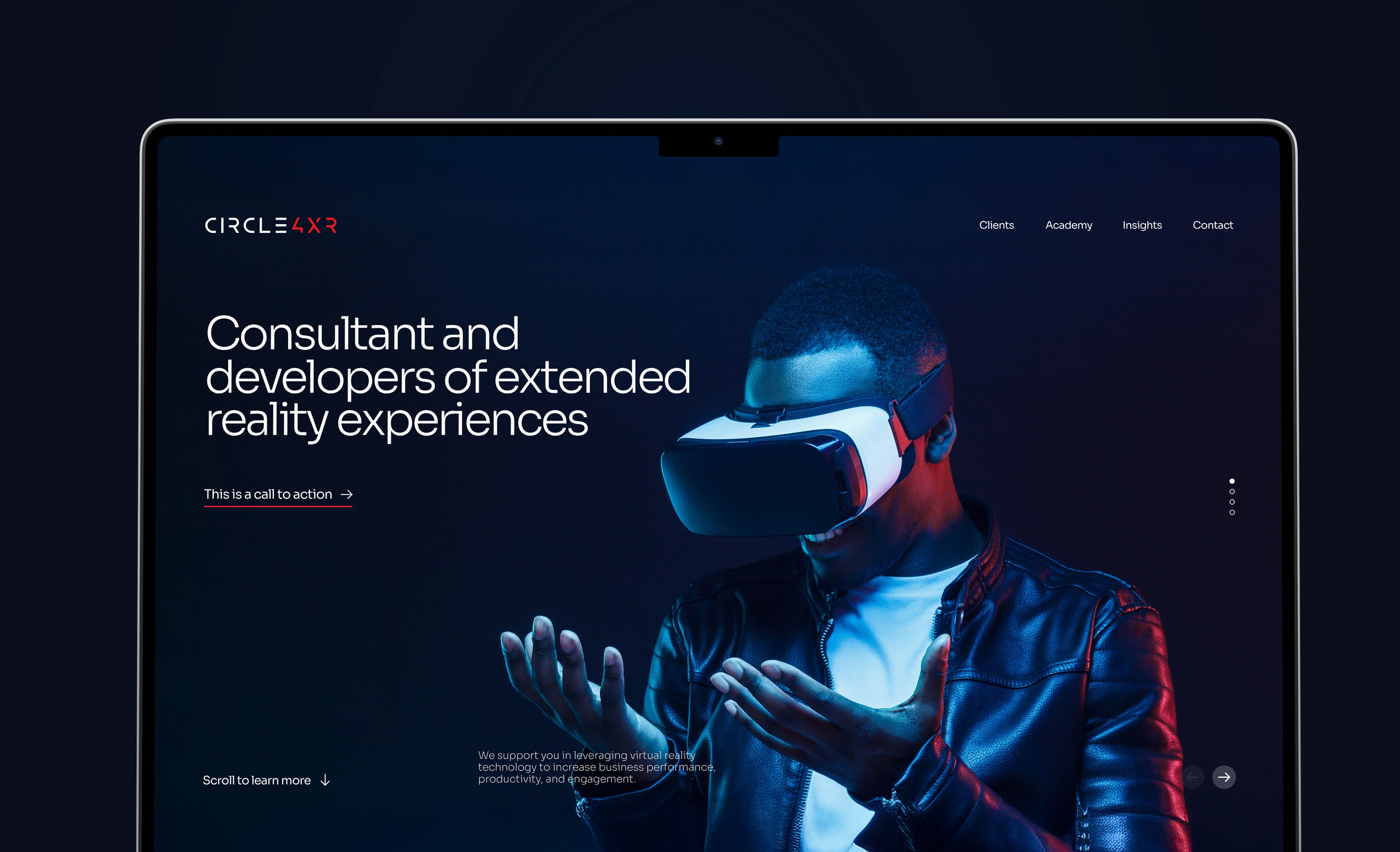The challenge was to design a website for Circle 4XR, positioning it as a leading innovator in the rapidly growing virtual reality industry.
